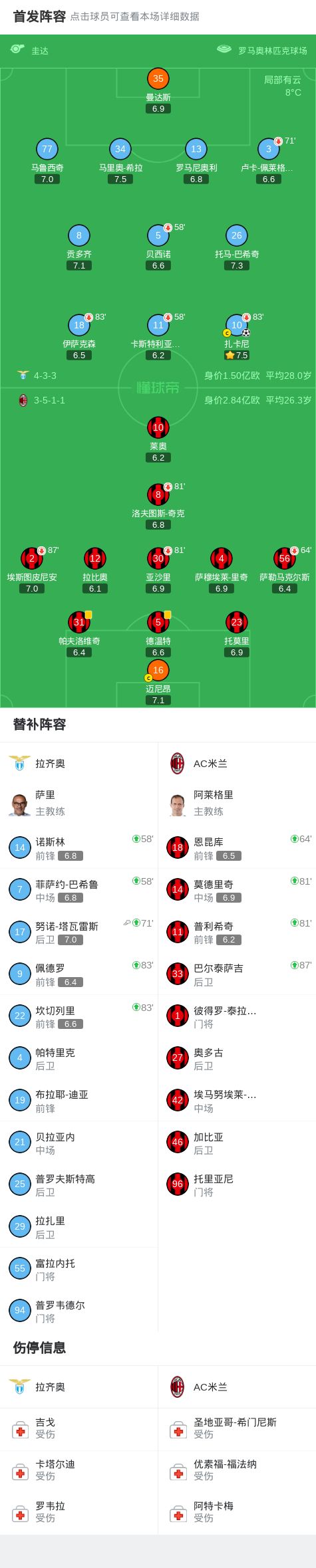 第80分钟,打破僵局!扎卡尼角球头球甩头破门,拉齐奥1-0米兰